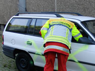 Vor Übungsbeginn: Ein kurzer Blick auf eines der Unfallfahrzeuge.