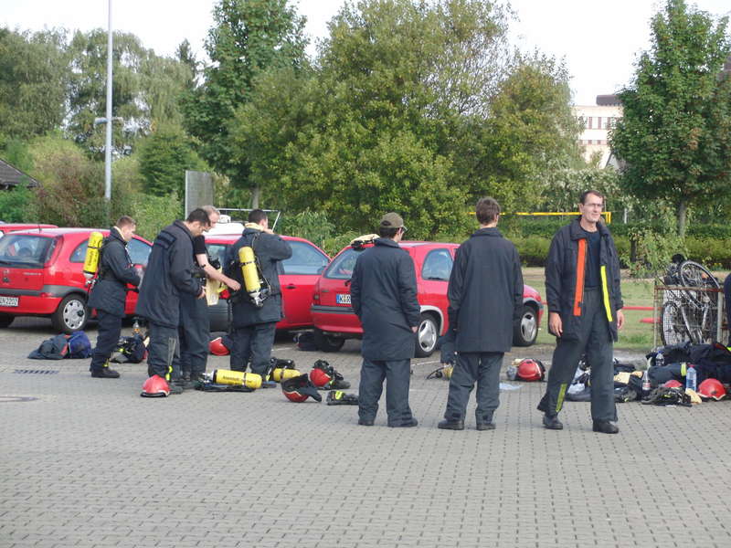Üben, üben, üben … auch hier wird die Atemschutzüberwachung praktiziert, denn auch das will gelernt sein.Das Schlimmste ist geschafft, jetzt nur noch abkühlen.