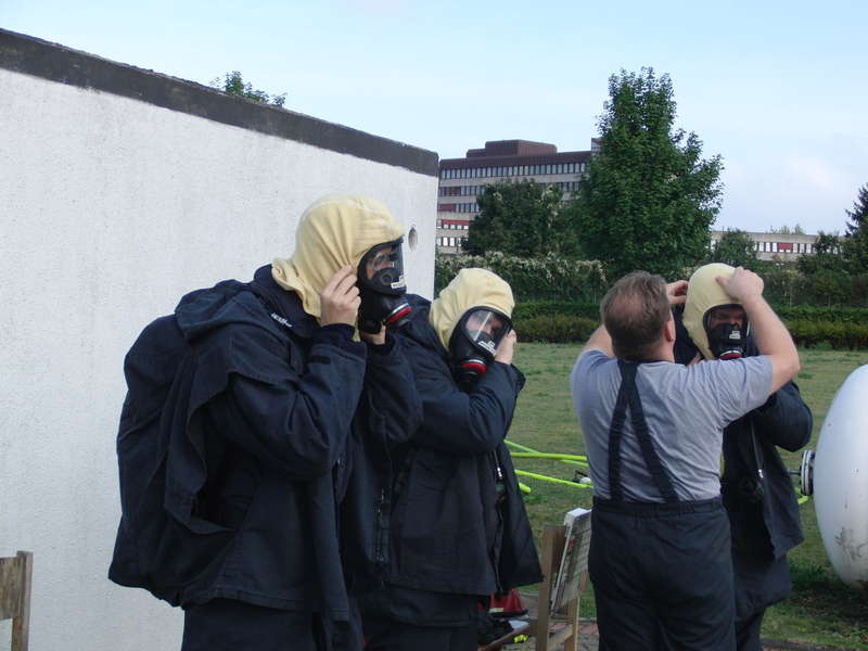 „Ich habe die Hölle gesehen...“ sagte einer der ersten Teilnehmer der Wärmegewöhnungsübung, als er aus dem Brandcontainer wieder ins Freie trat. Auch wenn die Ironie in der Stimme kaum zu überhören war, konnte man sich langsam ausmalen, was einen selbst in den nächsten Minuten ereilen würde. Beginnen wir aber der Reihe nach:Samstag Morgen, 6:15 Uhr: Der Wecker klingelt. Kurz nach 7 Uhr geht die Reise los, die der Ausbildung zum Atemschutzgeräteträger den perfekten, brandheißen Abschluss geben wird. In den letzten Wochen haben Patrick Neumann und Daniel Schuboth bereits etliche Stunden Ausbildung absolviert und die Abschlussprüfung zum Atemschutzgeräteträger gemeistert, heute steht die Wärmegewöhnung auf dem Programm.