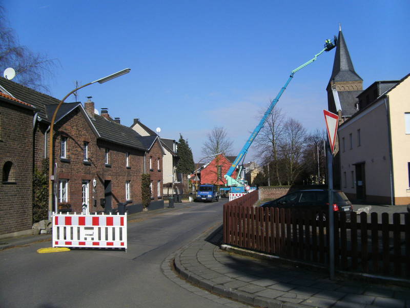 Am 2. März wurde das abgerissene Kreuz der Kirche in Libur von einer Fachfirma geborgen. Die dazu eingesetzte Teleskopbühne benötigte etwas mehr Platz, sodass die Pastor-Huthmacher-Straße für einige Stunden gesperrt wurde. Auch die Buslinie 163 der KVB war davon betroffen, weshalb kurzfristig eine Ersatzhaltestelle am Ortseingang von Libur eingerichtet wurde.Unser Löschgruppenmitglied Patrick Neumann hat vom ungewöhnlichen Treiben in Libur ein paar Fotos geschossen: