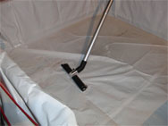 Der Swimmingpool des Feuerwehrmanns: Ein aus vier Steckleiterteilen, einer Plane und einer Arbeitsleine improvisiertes Bassin mit knapp 3000 Litern Fassungsvermögen.