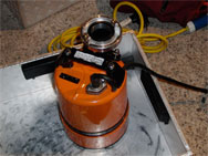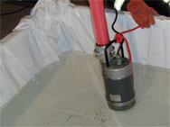 Unsere Schlürfpumpe von Tsurumi: Damit kann Wasser bis auf knapp einen Milimeter Restwasserhöhe abgesaugt werden. Der Nachteil: Schmutzwasser ist tabu.Bei anderen Quellen von Schadwasser, wie zum Beispiel einer defekten Hebeanlage für schadstoffbelastetes Wasser, kann es vorkommen, dass das