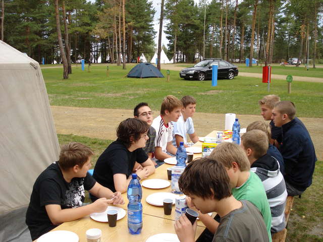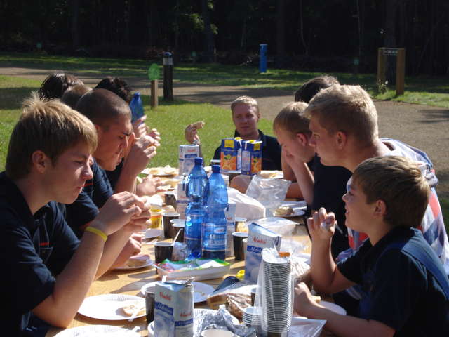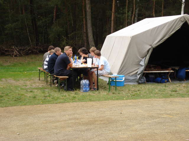 Nachdem wir im letzten Jahr leider nicht die Chance hatten mit der Jugendfeuerwehr auf Tour zu gehen, dass durch eine besondere Weihnachtsfeier jedoch wieder wett gemacht werden konnte, kann nun in diesem Jahr die Jugendabteilung unserer Löschgruppe jedoch von einem besonderen Erlebniswochenende erzählen. Nach ca. neun Stunden staugeprägter Fahrt kamen wir erst sehr spät abends auf einem wunderschönen, sauberen und fast leeren Campingplatz in Krausnick, nahe Berlin, an. Sehr schnell waren die beiden großen Zelte aufgebaut und die 14 Feldbetten aufgeklappt, da alle sehr hungrig von der anstrengenden Fahrt waren. Anschließend wurden die hungrigen Mäuler mit Leckereien vom Grill gestopft.