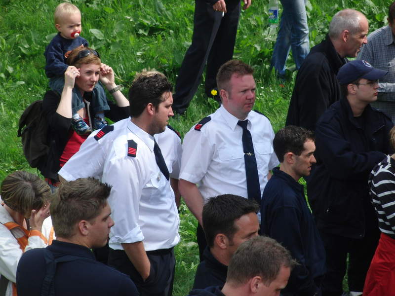 Die Höhenretter (stationiert auf Feuerwache 4 in Köln-Ehrenfeld) bereiten sich auf ihre Vorführung an der Drehleiter vor.