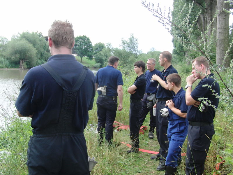 In der heutigen Zeit steht uns Wasser zur fast uneingeschränkten Nutzung zur Verfügung. Dies ist eine der Annehmlichkeiten, die die Zivilisation so mit sich bringt. Bis zur Mitte des vergangenen Jahrhunderts war das – vor allem in ländlichen Teilen – bei weitem noch keine Selbstverständlichkeit. Da die Feuerwehr auf das Wasser als Löschmittel besonders angewiesen ist, muss man sich auch heute mit dem „Was wäre wenn“-Fall auseinandersetzen, in dem die Löschwasserversorgung durch Hydranten nicht oder nicht mehr gewährleistet ist.Im Fall einer eventuell zerstörten oder fehlenden Wasserversorgung bieten sich zwei grundlegende Herangehensweisen: Quasi per sofort können Tanklöschfahrzeuge mehrere tausend Liter an Wasser bereitstellen und im Pendelverkehr auch dauerhaft liefern. Für zeitlich begrenzte Einsätze ist dies durchaus ein probates Mittel. Als Alternative dazu kommt – gerade bei länger dauernden Einsätzen – die Wasserförderung mittels längerer Schlauchleitungen in Betracht. Man ersetzt also die fehlenden Wasserleitungen und Hydranten. Da dies neben der Theorie auch ein wenig praktischer Übung erfordert, stand der vergangene Samstag ganz im Zeichen einer entsprechenden Übung, zu der uns die