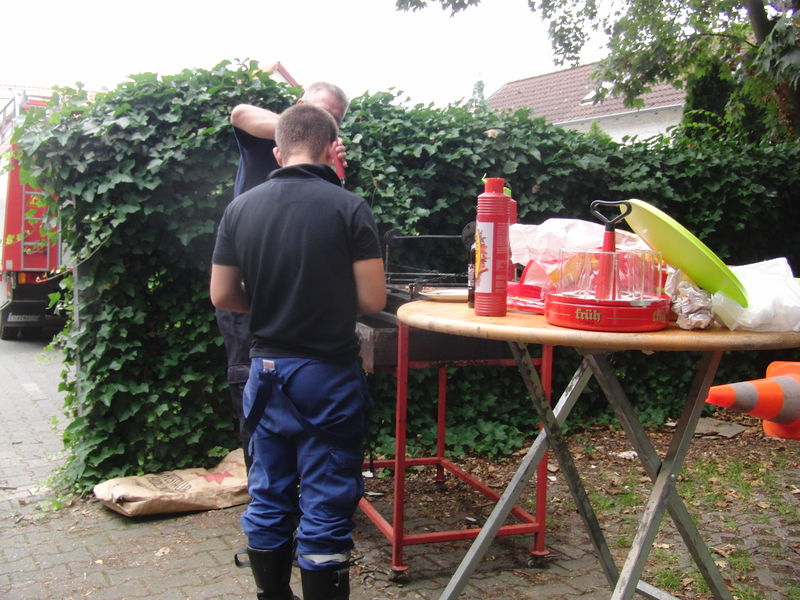 Ob Einsatz oder Übung, am Ende muss aufgeräumt werden.Als Abschluss des Tages lud die Löschgruppe Langel zu Würstchen und Fleisch vom Grill sowie leckerem Kartoffelsalat ein, sodass die absolvierte Übung in angenehmer Atmosphäre besprochen werden konnte. Für unsere beiden Löschgruppen war dies auch eine gute Gelegenheit, sich mal in ruhiger Umgebung abseits einer realen Einsatzstelle etwas besser kennenzulernen. Für die gute Zusammenarbeit während der Übung und die leckere Verpflegung möchten wir uns bei den Kameraden aus Langel an dieser Stelle noch mal ganz herzlich bedanken!