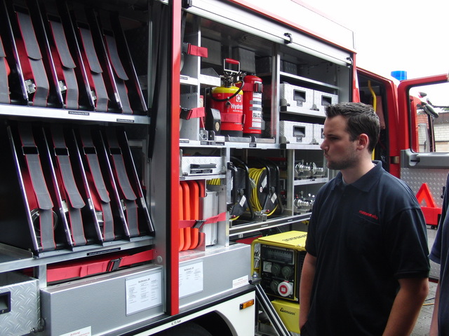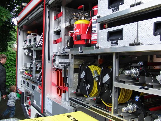 Auch wenn Sie die Fahrzeug-Fotos sehr an unser neues Einsatzfahrzeug erinnern werden: Es gib ein paar Unterschiede. Das Fahrgestell der beiden Fahrzeuge ist identisch, aber der Aufbau und vor allem die Beladung unterscheiden sich deutlich. Die Löschgruppe Porz-Langel ist innerhalb der Feuerwehr Köln mit der Sonderaufgabe Beleuchtung betraut worden, weshalb das neue Fahrzeug als Sonderfahrzeug für den Beleuchtungseinsatz (und als Ersatz für das alte Fahrzeug mit Baujahr 1981) beschafft worden ist. Beim neuen Fahrzeug handelt sich - nach Norm - auch nicht um ein Löschgruppenfahrzeug, sondern um ein TSF-W auf 12-Tonnen-Fahrgestell, um den nötigen Platz und Gewichtsreserven für die Zusatzgeräte zur Beleuchtung zu schaffen.