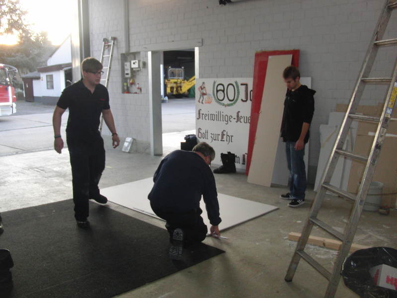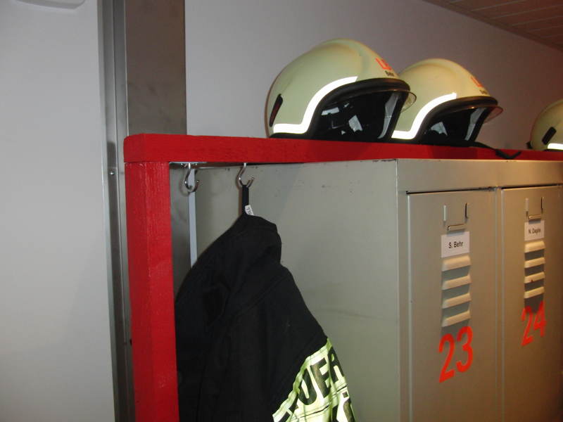 Der Innenausbau wurde in unzähligen Freizeitstunden von einigen besonders engagierten (und wie sich im Ergebnis zeigt, auch besonders fähigen) Kameraden vorangetrieben. Nichtsdestotrotz dauerte es mehr als einen Monat, bis die Spinde und Uniformen wieder ihren festen Platz in der Umkleide einnehmen konnten.
