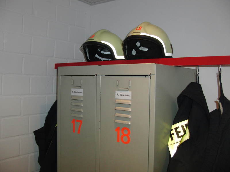 Die Umkleide ist, um auch den nicht so feuerfesten Bürgern einen Einblick zu geben, ein relativ wichtiger Ort für eine Freiwillige Feuerwehr. Anders als bei der Berufsfeuerwehr, wo die Einsatzkleidung der diensthabenden Schicht in der Nähe der Fahrzeuge deponiert ist, fängt der Einsatz für die freiwilligen Kräfte an diesem zentralen Ort an. Während die Kameraden nach einer Alarmierung in die Umkleide strömen, werden dort schon oft wichtige Absprachen getroffen. Wer ist schon anwesend? Wer wird das Einsatzfahrzeug fahren, wer die Gruppe führen? Wer besetzt den Angriffstrupp? Nicht selten werden dort Informationen zur Anfahrt zur Einsatzstelle ausgetauscht ... oder es wird auch mal geflucht, dass der Melder zu nachtschlafender Zeit ausgelöst hat – auch das soll es geben.