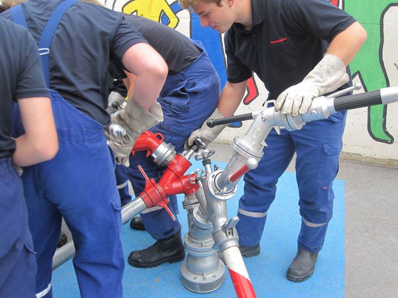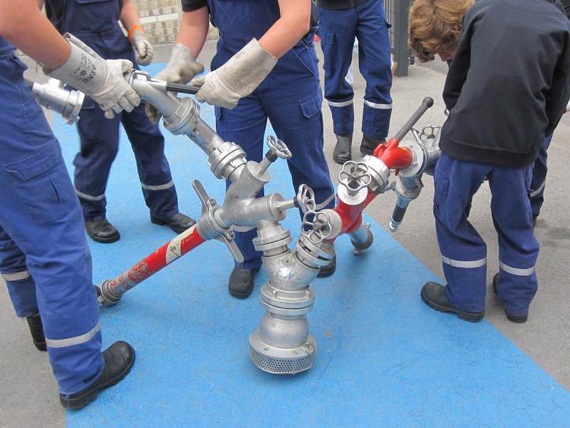 Nach der Mittagspause widmeten wir uns dann der Jugendflamme 2. Die Jugendflamme ist eine kleine Prüfung, bei der das feuerwehrtechnische Wissen von einem/r Jugendfeuerwehrmann/frau oder einer ganzen Gruppe getestet und bewertet wird. Dies geschieht jedoch, wie alles bei der freiwilligen Feuerwehr, auf freiwilliger Basis. Die Jugendflamme ist in mehrere Stufen unterteilt. Angefangen mit Stufe 1, die bereits fast unsere komplette Gruppe aufweisen kann. So galt es nun bei der Jugendflamme 2 eine Übung mit sechs Leuten zu absolvieren – eine sogenannte Staffelübung. Dabei galt es so schnell und mit so wenigen Fehlern wie möglich zu agieren.