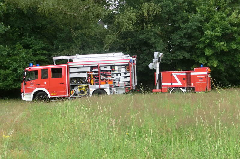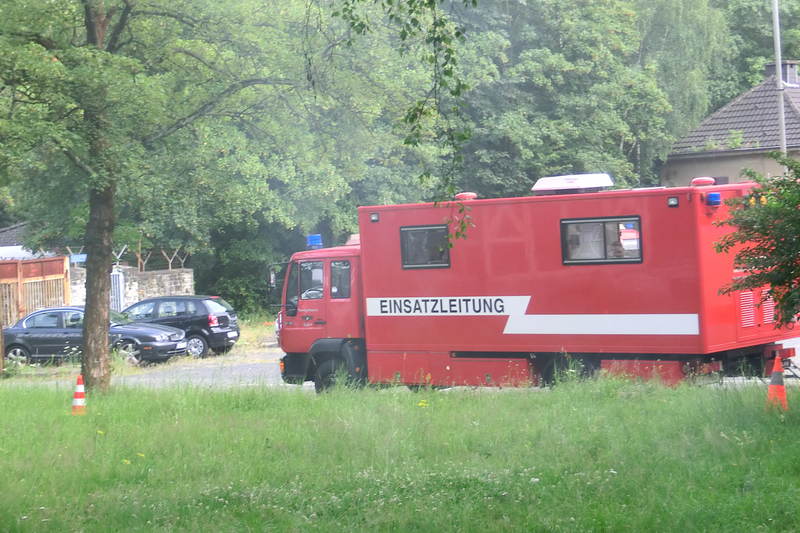 In einer weiteren Einsatzübung auf dem Gelände der Deutz AG konnten wir dann nochmals einen Brandeinsatz proben. Arbeiter, die bei Schweißarbeiten in einem Versorgungsschacht versehentlich einen Brand ausgelöst hatten, wurden vermisst. In diesem Szenario arbeiteten wir wieder mit der Löschgruppe Heumar zusammen, die in dieser Übung als erste Einheit an der Einsatzstelle eingetroffen war. Die Mannschaft aus Libur unterstützte daher die Suche nach den Vermissten Personen, indem der Angriffstrupp über einen Seiteneingang bis in den im Keller liegenden Versorgungsschacht vordrang. Auch hier wurde, nachdem der Zugang geöffnet wurde, zügig vorgegangen. Eine der vermissten Personen wurde zu dieser Zeit vom Angriffstrupp Heumar gefunden. Wenig später konnten auch wir bis zur zweiten Person vorstoßen und diese aus dem Gefahrenbereich bringen.