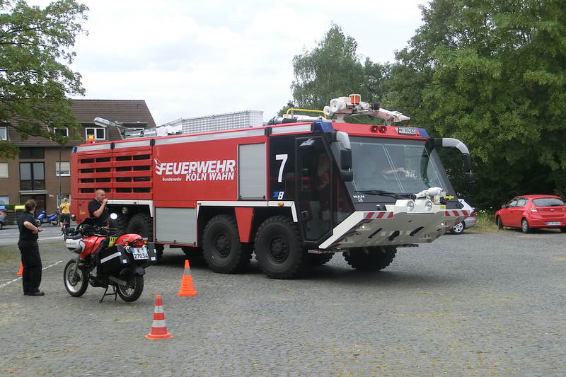drei Löschgruppen der Freiwilligen Feuerwehr Köln über einen Rüstwagen, entsprechend wichtig wird hier die Ausbildung rund um diesen Bereich der Hilfeleistung genommen. Zwar waren wir bei der Übung nur mit unserem Löschfahrzeug zugegen und konnten nicht auf die umfangreichen Mittel des Rüstwagens zurückgreifen, unsere Bewertung bei der Übung machte dennoch den guten Ausbildungsstand der Kameraden sichtbar: Wir wurden für besondere Schnelligkeit bei der Befreiung einer Person gelobt, die unter einem IBC-Container eingeklemmt war. Weiterhin zeigten sich die Übungsbeobachter von der Organisation an der Einsatzstelle und der Ruhe begeistert, mit der wir diesen Einsatz abwickelten.