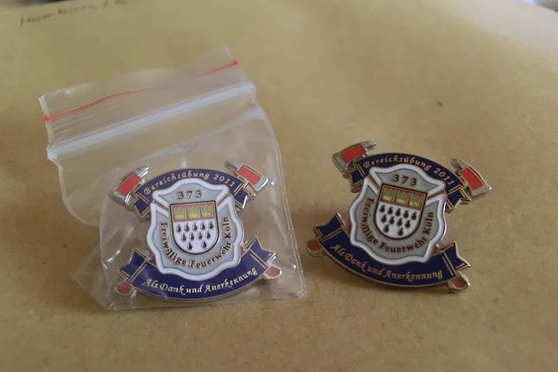 Schönes Andenken: Eine Anstecknadel als Erinnerung an den Übungstag.